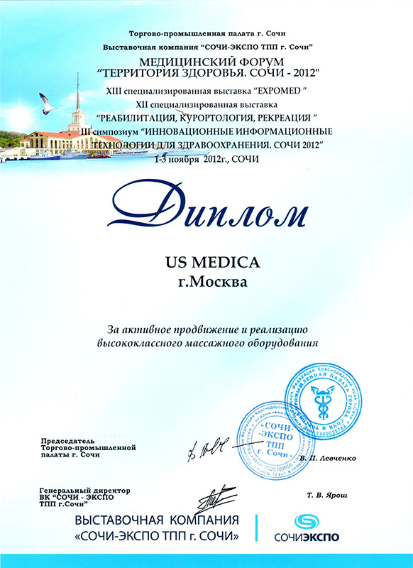 Наша компания является официальным представителем известнейших мировых производителей оборудования для массажа, среди них американская компания US MEDICA, японские бренды YAMAGUCHI , FUJIIRYOKI и HAKUJU, итальянская компания ANATOMICO. На рынок России мы вышли в 2007 году. За время работы мы активно принимали участие в профильных выставках, на которых наши товары неизменно получали самые высокие оценки профессионалов, работающих в индустрии массажа и простых зрителей.